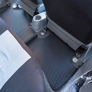 Автоковрики ЕВА не впитывают, а удерживают грязь в ячейках. Вода не катается по полу, как в резиновых половичках, однако, её все равно видно. ЕВА удобны тем, что их легко достать не пролив и вытряхнуть. Они дешевле.
