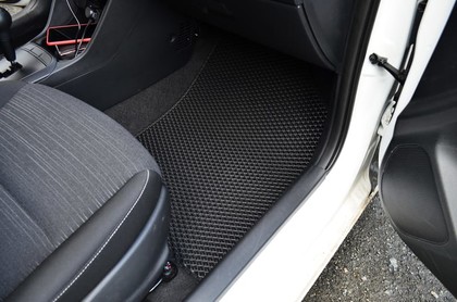 Автоковрики ЕВА не впитывают, а удерживают грязь в ячейках. Вода не катается по полу, как в резиновых половичках, однако, её все равно видно. ЕВА удобны тем, что их легко достать не пролив и вытряхнуть. Они дешевле.